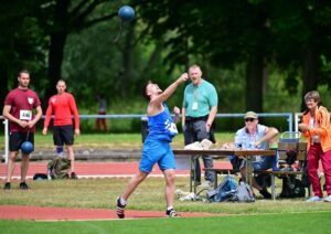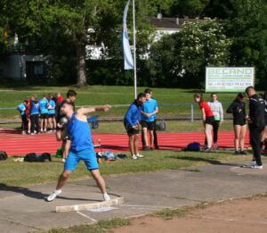 Danach hatte Theodor immer noch genug Power für die B-Quali-Norm (7,00m) im Steinstoßen. Der 15kg Eisenquader landete im besten Versuch bei 7,18m. Die A-Quali-Norm hat an diesem Tag niemand geschafft. Außer Theodor konnten sich zwei weitere Sportler aus Rheinland-Pfalz und der so erfolgreiche Athlet der Lf Villmar über die Erfüllung der B-Quali freuen. Der badische Meister erzielte 6,93m und hat damit dieses Ziel knapp verpasst