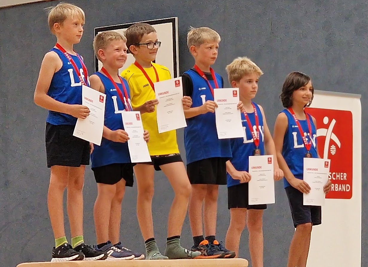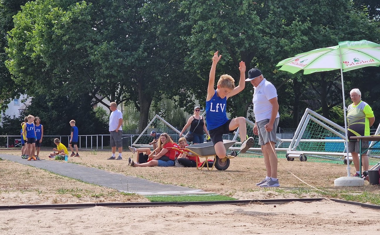 Mit 5 Mal Gold und 5 Mal Silber gab es für die LfV insgesamt 10 Medaillen und viele persönliche Bestleistungen. Besonders gute Leistungen boten die sieben Nachwuchsathleten im Dreikampf (50 m/Weit/Ball), die allesamt ihre Leistungen steigern konnten. Der Jüngste bei den Schülern Nic Binnentreu, zeigte in der Klasse M 8 mit 13,256 Punkten (10,2 sek/2,70 m/19,50 m) gute Leistungen, wurde Hessenmeister und mit der Goldmedaille belohnt. Ebenfalls Gold und die Hessenmeisterschaft errang bei der M 9 Armin Conrad mit guten 18,849 Punkten, (9,4 sek/2,99 m/ 36,00 m), der mit 36 m der beste Werfer war. Platz 2 und die Silbermedaille ging hier an Benjamin Horst mit 15,326 Punkten (9,7 sek/3,16 m/21,00 m). Den dritten Titel und das dritte Gold ging bei der M 10 an Liam Dernbach mit 16,043 Punkten (8,9 sek/3,33 m/16,00 m), vor Joel Haas mit 10,899 Punkten (10,3 sek/2,71 m/9,50 m), der 2. wurde und Silber gewann.