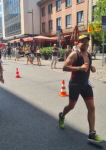 Mit dem VLG-Neuzugang Hendrik Schütz aus Niederbrechen und dem erfahrenen Triathleten Matthias Jost stellte die VLG Eisenbach zwei der insgesamt 842 Teilnehmer, die um 09.36 Uhr in die noch kühlen Fluten des Langener Waldsees zum Schwimmen über 1.600 Meter stiegen. Nach dem Landgang ging es nach der Wechselzone auf das Rennrad um die 45 Kilometer lange Radstrecke zu absolvieren. Vorbei am Waldstadion ging es über die Mörfelder Landstraße und die Kennedyallee bis in Höhe Friedensbrücke und weiter im Linkskurs über Niederrad nach Schwanheim über die Mainbrücke bis Nied, die Mainzer Landstraße über die Camberger Brücke und die Gutleutstraße zur Wechselzone am Frankfurter Roßmarkt. Der abschließende 10 Kilometer Lauf führte die beiden über die Hauptwache, Konstabler Wache, Zeil, Schäfergasse, IHK, Börse und Alte Oper zum roten Teppich im Ziel an der Hauptwache.