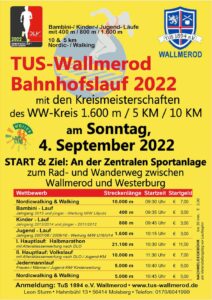 wir laden euch im Namen des Vorstandes und aller Mitglieder unseres Vereins zu unserem 30. Wallmeroder Bahnhofslauf am Sonntag, den 4. September 2022 ein.