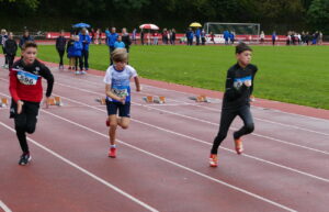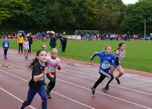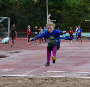 Auch wenn der starke Regen kurz vor dem ersten Wettkampf aufhörte, kämpften alle Athletin-nen und Athleten immer wieder einmal mit kurzen Schauern. Unter diesen Bedingungen absol-vierten auch Mia Gersdorf und Leni Hennemann (beide W10) in ihrem letzten Saisonwett-kampf einen Vierkampf mit 800 m.