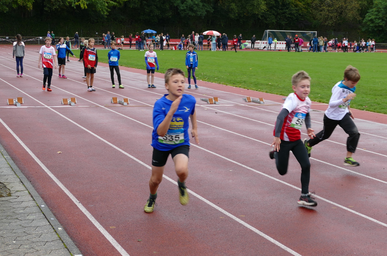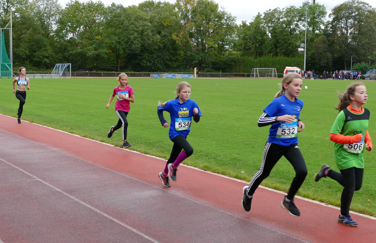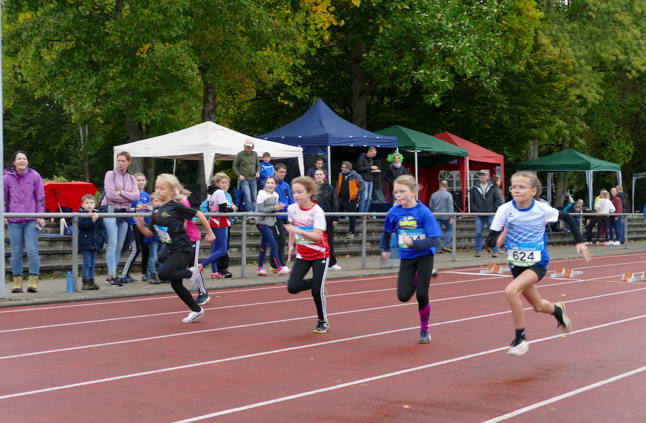 Auch wenn der starke Regen kurz vor dem ersten Wettkampf aufhörte, kämpften alle Athletin-nen und Athleten immer wieder einmal mit kurzen Schauern. Unter diesen Bedingungen absol-vierten auch Mia Gersdorf und Leni Hennemann (beide W10) in ihrem letzten Saisonwett-kampf einen Vierkampf mit 800 m.