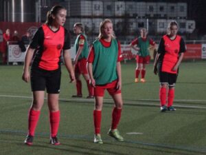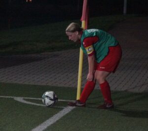 Der Sekundenzeiger hatte seine erste Runde noch nicht beendet, da hieß es schon 1:0. Vom Anstoß weg wurde Sina Zimmermann steil geschickt und schloss ins lange rechte Eck ab. Praktisch mit dem Gegenzug hätten die Gäste den Ausgleich erzielen können, scheiterten aber an der Latte. Zwischen der 16. und 20. Minuten ging es dann Schlag auf Schlag. Erst verschoss Lena Schaaf einen an Mareike Meurer verursachten Foulelfmeter. Besser machte es Mareike, sie verwandelte den zweiten Elfmeter sicher zur 2:0 Führung. Das schönste Tor des Tages gelang Lena Schaaf. Nach einer tollen Kombination über Aylin und Sina gelang ihr das 3:0. Nur eine Minute später verkürzte die SG mit tatkräftiger Unterstützung der Limburger Hintermannschaft auf 1:3. Mareike Meurer, Lena Schaaf und Manuela Weil hätten die Führung noch vor der Pause ausbauen können, scheiterten aber jeweils am Pfosten oder an Lara Einig im Tor der Gäste.