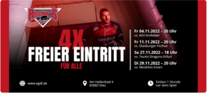 Freitag, den 11.11.2022 ab 20 Uhr gegen die Duisburger Füchse (kostenlos)