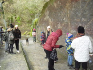 Nach dreijähriger Pause hatten die Leichtathletikfreunde 1987 Villmar wieder zu einer Winterwanderung eingeladen. Der Wettergott meinte es gut am Samstagmorgen und stellte für einige Stunden den Regen ab. Es trafen immer mehr Wanderer am LfV – Vereinsheim zur diesjährigen Winterwanderung der Leichtathletikfreunde 1987 Villmar ein und so kamen insgesamt 38 Personen und zwei Hunde zusammen, die teilweise oder die gesamte Strecke mit wanderten. Vom Vereinsheim aus ging die Wanderung steil bergab in Richtung Lahn, über die Marmorbrücke, vorbei an der Schleuse, über den „sprechenden“ Bahnübergang, was vor allem für die Jüngsten eine tolle Überraschung war, bis hin zur „Ibach-Eiche“ und weiter bergauf zum Aussichtspunkt „Gretchenstein“, von wo aus viele das König-Konrad-Denkmal erstmals von der anderen Seite sehen konnten. Dort wurde erst einmal eine Rast eingelegt und hoch über der Lahn ein deftiges Frühstück eingenommen. Gestärkt und etwas ausgeruht wurde dann weiter über das Schadecker Feld gewandert bis hin zum Tunnel. Dort erfolgte dann der Abstieg, vorbei an den ehemaligen Natursteinwerken, einem kleinen Abstecher in die Villmarer „Unterwelt“, von der alle fasziniert waren und einige erlebten zum ersten Mal das über die Ortsgrenzen hinaus bekannte Freilichtmuseum „Unica-Bruch“. Etwas müde, aber begeistert mit vielen neuen Eindrücken, ging es dann zurück ins Vereinsheim der Leichtathletikfreunde.