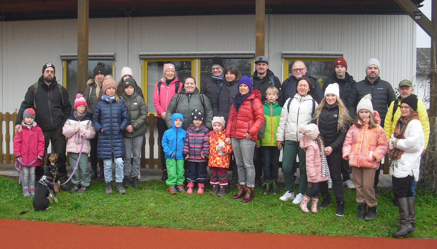 Nach dreijähriger Pause hatten die Leichtathletikfreunde 1987 Villmar wieder zu einer Winterwanderung eingeladen. Der Wettergott meinte es gut am Samstagmorgen und stellte für einige Stunden den Regen ab. Es trafen immer mehr Wanderer am LfV – Vereinsheim zur diesjährigen Winterwanderung der Leichtathletikfreunde 1987 Villmar ein und so kamen insgesamt 38 Personen und zwei Hunde zusammen, die teilweise oder die gesamte Strecke mit wanderten. Vom Vereinsheim aus ging die Wanderung steil bergab in Richtung Lahn, über die Marmorbrücke, vorbei an der Schleuse, über den „sprechenden“ Bahnübergang, was vor allem für die Jüngsten eine tolle Überraschung war, bis hin zur „Ibach-Eiche“ und weiter bergauf zum Aussichtspunkt „Gretchenstein“, von wo aus viele das König-Konrad-Denkmal erstmals von der anderen Seite sehen konnten. Dort wurde erst einmal eine Rast eingelegt und hoch über der Lahn ein deftiges Frühstück eingenommen. Gestärkt und etwas ausgeruht wurde dann weiter über das Schadecker Feld gewandert bis hin zum Tunnel. Dort erfolgte dann der Abstieg, vorbei an den ehemaligen Natursteinwerken, einem kleinen Abstecher in die Villmarer „Unterwelt“, von der alle fasziniert waren und einige erlebten zum ersten Mal das über die Ortsgrenzen hinaus bekannte Freilichtmuseum „Unica-Bruch“. Etwas müde, aber begeistert mit vielen neuen Eindrücken, ging es dann zurück ins Vereinsheim der Leichtathletikfreunde.