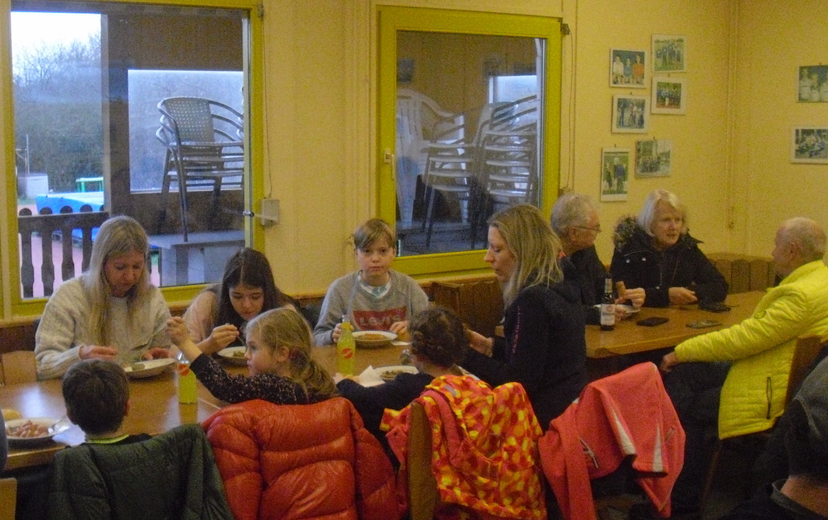 Wieder im Vereinsheim angekommen, dauerte es nicht lange und Heidi Jung hatte einen großen Topf Bohnensuppe mit Würstchen gekocht, die von den hungrigen Wanderern dankend angenommen wurde.