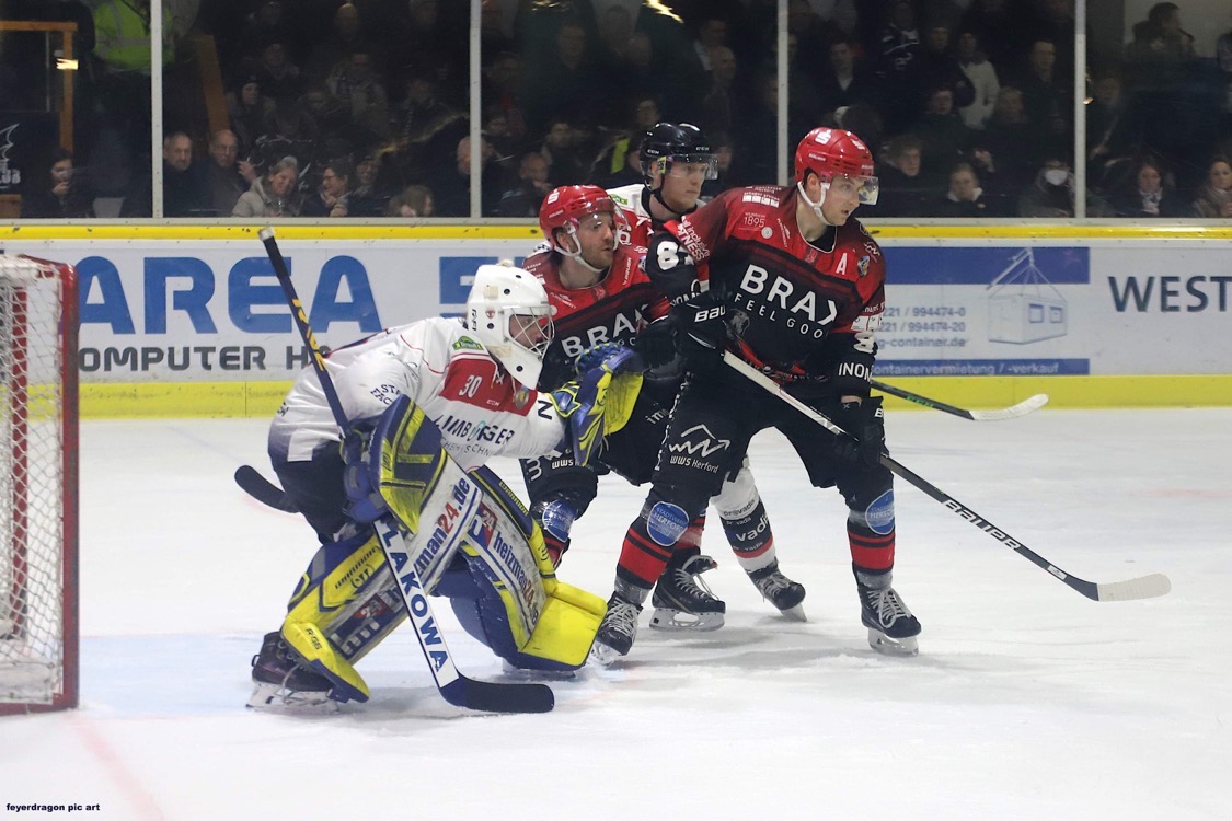 Wie bereits mehrfach in der Saison geschehen, wurden die ersten Minuten der EGDL zum Verhängnis. Obwohl das Spiel auf den ersten Blick ausgeglichen wirkte, waren die Gastgeber maximal effektiv und führten innerhalb von 4:47 Minuten mit 3:0. In der 15. Minute erhöhte Rustam Begovs auf 4:0 für den HEV.