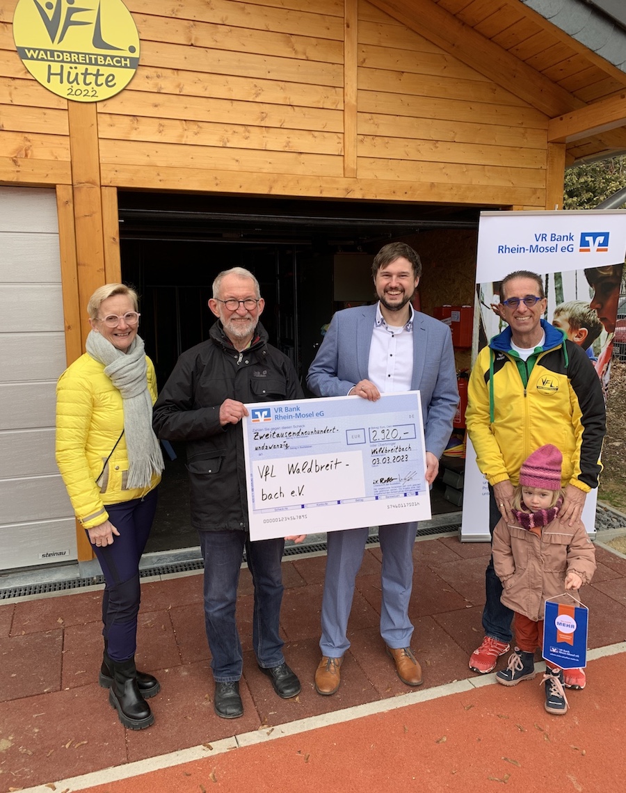 Waldbreitbach – „Wir freuen uns, dass wir über die Crowdfunding-Plattform der VR-Bank Rhein-Mosel eG 2.920 Euro für den Innenausbau der VfL-Hütte bekommen zu haben“, sagt Vorsitzender Wolfgang Bernath bei der Übergabe des Spendenschecks. „Wir bedanken uns bei allen Spenderinnen und Spendern sowie der VR Bank Rhein-Mosel für ihren Zuschuss“, fügte Geschäftsführer Josef Hoß hinzu.