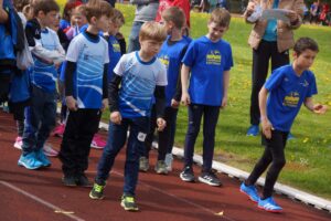 Während 8 Mannschaften in der U8 2×30 m gesprintet, die Hindernissprint-Staffel sowie die Einbeinhüpfer-Staffel absolviert und die Flatterbälle geworfen waren, siegte das Team der 7jäh-rigen der Lahn-Aar-Esterau vor dem TV Weisel ergänzt durch einzelne Sportlerinnen und Sport-ler anderer Vereine sowie der gemischten Mannschaft von SV Blau-Weiß Niederelbert und TuS Katzenelnbogen-Klingelbach.