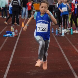 Lina Höller (TSK) mit 8,13 s und Leonie Dingel (TuS KK) mit 8,33 zeigten mit Platz 3 und 4 die schnellsten Zeiten der Sprinterinnen des Rhein-Lahn-Kreises. Kreisbeste waren auch Lina als Vierte mit 3:07.83 min über 800 m beim Sieg von Sofie Hartmann (TV Urmitz) in 2:53, 01 min. Ebenfalls Platz 4 als Kreisbeste wurde Mia Gersdorf (LG LAE) mit 1,11 m im Hochsprung, höhen-glich mit Lina, jedoch mit einem Fehlversuch weniger. Im Weitsprung belegten beide die Plätze 2 und 3, Mia mit 3,88 m, Lina mit 3,79 m, während Lina mit dem Schlagball und 25 m das Duell auf Platz 4 deutlich für sich entschied, während Mia als Zweitbeste des Kreises mit 20,5 m Platz 10 erreichte.