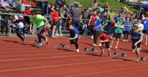 „So voll sah ich noch nie einen Sportplatz“, äußerten mehrere „alte Leichtathletikhasen“. Insgesamt 432 Sportlerinnen und Sportler der Altersklassen U8 -U20 mit rund 1600 Disziplinen aus dem gesamten Gebiet des LV Rheinland sowie angrenzenden hessischen Vereinen starteten auf der Zentralen Sportanlage in Diez zur Bahneröffnung der LG Lahn-Aar-Esterau. Begleitet wurden sie von zahlreichen Eltern, Trainern, Betreuern und Gästen, so dass mindestens 700 Menschen den Platz bevölkerten, die die kleinen und großen Sportlerinnen und Sportler anfeu-erten. Dieser Andrang war von der kleinen LG LAE und durch die Gegebenheiten vor Ort nur noch unter extremen Anstrengungen zu stemmen. Neben fast 60 Kampfrichtern, darunter dan-kenswerterweise 7 Kampfrichtern anderer Vereine (TV Bad Ems, TuS Hachenburg, TG Oberlahn-stein, TV Weisel) und viel Unterstützung im Hintergrund, alleine schon, um – mit positiver Reso-nanz der Besucher – immer wieder Toilettenpapier und Handtücher aufzufüllen, waren nötig, um den 6 ½ stündige Zeitplan weitgehend einzuhalten. Die Nutzung aller 4 Weitsprunggruben, die Austragung aller Sprints als Zeitläufe sowie 4 Durchgänge in der M/W U12 im Weitsprung und Schlagballwurf trugen dazu bei, den Wettkampf im Zeitrahmen zu halten.