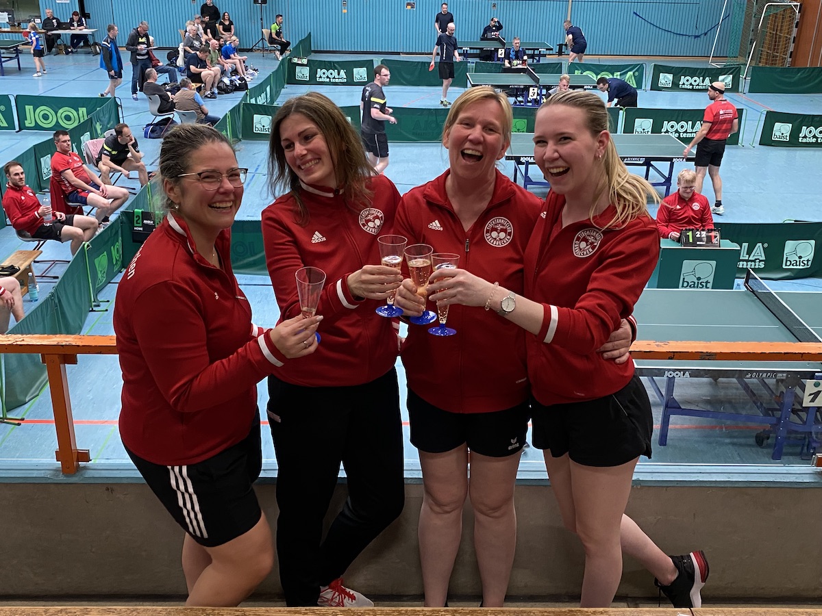 Nach dem Einspielen stellten sich die Mannschaften zur Begrüßung auf und es ging im Nachgang mit den ersten Matches wie folgt los: Müller / Kunkler-Knoth waren im Doppel gegen Klement / Buschky nicht zu stoppen und gewannen recht eindeutig mit 3:0. Das war ein souveräner Sieg. Fritz / Schädel gewannen ihr Spiel gegen Klement / Arthen überzeugend mit 11:8, 11:6, 11:9. Die Anzeigetafel zeigte nach den Eingangsdoppeln ein 2:0. Weiter ging es anschließend mit den EinzelMatches. Johanna Müller hatte gegen Michaela Buschky, wie im Vorfeld erwartet werden musste, bei ihrem 3:0 wenig Probleme. Deutlich nach Sätzen war hingegen die 0:3-Pleite von Stefanie Fritz gegen Silke Klement, eine Niederlage, die man vor dem Spiel so erwarten konnte. Kurz später ging das untere Paarkreuz bei einem Spielstand von 3:1 an den Tisch. 2:3 endete anschließend das Einzel zwischen Sigrun Kunkler-Knoth und Nicole Arthen aus Sicht der Heimmannschaft, so dass am Ende der Zähler entgegen den Erwartungen anhand der TTR-Werte auf das Konto der Gäste ging.