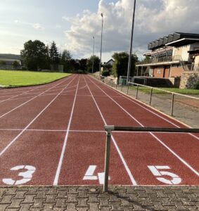 Am Ende präsentierte LSG-Vorsitzender Thomas Laux noch ein paar Zahlen, Daten und Fakten zur Tartanbahn: Im Jahr 2005 sei die Aschenbahn in Niederselters in eine Vollkunststoffanlage umgebaut worden. Nach 18 Jahren habe es nun einer umfangreichen Sanierung bedurft. Denn die Anlage sei intensiv genutzt worden, nicht nur und insbesondere von den ortsansässigen Vereinen, sondern auch von der Schule für den Sportunterricht, die Bundesjugendspiele und immer einmal wieder auch für „Jugend trainiert für Olympia“-Kreisentscheide. Insgesamt seien bei der jetzigen Sanierung 410 qm Tartan komplett ausgetauscht worden, 2.850 qm mit roter Oberschicht versehen und danach 4,5 km Linien neu gezogen worden.
