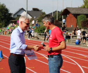 Für den TV Niederselters, der als zweiter Verein die Anlage für die Leichtathletik nutzt, kam Vorstandsmitglied Stefan Otto. Weitere Ehrengäste waren Andreas Hofmeister als sportpolitischer Sprecher der CDU-Landtagsfraktion, Bürgermeister Jan Pieter Subat und Jürgen Hundler als 1. Beigeordneter der Gemeinde Selters, Heinz Seidel für den Ortsbeirat Niederselters und als Vertreterinnen der Schule im Goldenen Grund die stellvertretende Schulleiterin Frau Sellger sowie Frau Merth (Aufgabengebiet Ganztag). Landrat Michael Köberle sowie der Vorsitzende der Gemeindevertretung, Manuel Böcher, hatten aus Termingründen absagen müssen.