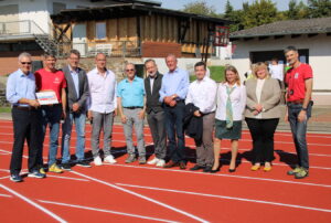 Die Ausrichtung des Kreisentscheids „Jugend trainiert für Olympia“ wurde genutzt, um die frisch renovierte Bahn einzuweihen. Zu diesem Anlass hatte LSG-Vorsitzender Thomas Laux u. a. die Vertreter der Institutionen eingeladen, die die Maßnahme unterstützt haben. Für den Sportkreis Limburg-Weilburg kam Thomas Weikert, der gleichzeitig Präsident des Deutschen Olympischen Sportbundes ist (Dachverband aller Sportverbände und -vereine in Deutschland) und damit der höchste Vertreter des Deutschen Sports. Außerdem freute sich der LSG-Vorsitzende, als Vertreter des Landes Hessen den Staatssekretär aus dem Hessischen Kultusministerium, Dr. Manuel Lösel, als Ehrengast begrüßen zu dürfen. Das Land Hessen hat mit einem Anteil von 40 % den höchsten Zuschuss für die Maßnahme gewährt, die sich insgesamt auf gut 100.000 Euro beläuft. Die LSG selbst muss einen Anteil von mehr als 16.000 Euro stemmen, obwohl der Sportplatz im Eigentum der Gemeinde Selters steht.
