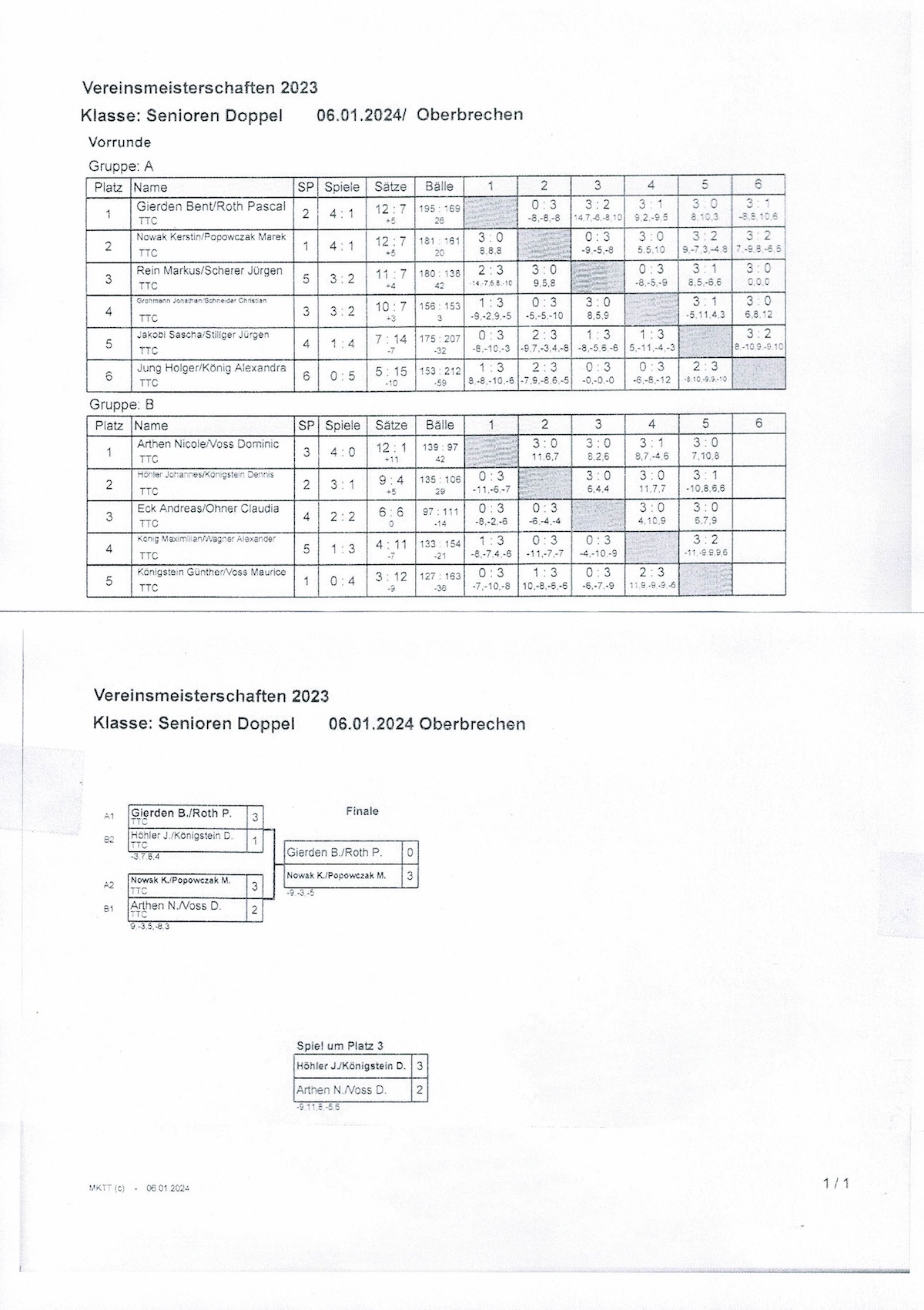 Im Doppel gratulieren wir Kerstin Nowak und Marek Popowczak zum Meistertitel. Begonnen hat unser Turnier mit dem Doppel, dem eigentlichen Highlight einer Vereinsmeisterschaft.