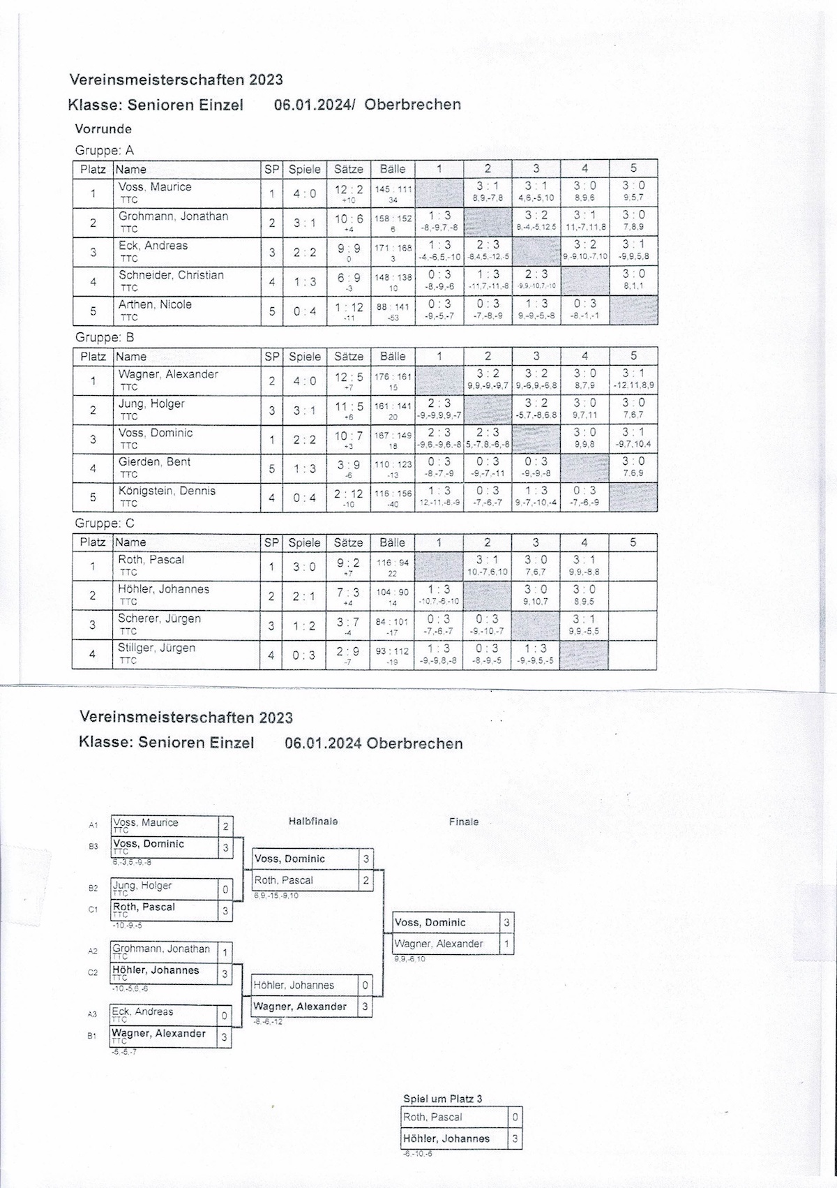 Der TTC-Oberbrechen gratuliert Dominic Voss zum neuen Vereinsmeister 2023, dass er in einem packenden Endspiel gegen Alexander Wagner gewann.
