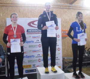 Ein großartiger Einstand in die neue Saison gelang Leslie Arbeiter von den Leichtathletikfreunden Villmar bei den Hessischen Winterwurfmeisterschaften in Frankfurt. Im Diskuswerfen der W 15 war sie von Beginn an in der Spitzengruppe und gewann mit guten 24,87 m den 3. Platz und die Bronzemedaille. Auch die beiden Mädchen Staecy Fleig und Xenia Horst konnten nach erst einer Trainingseinheit mit dem 1 kg Diskus zufrieden sein. 14,22 m und 9,71 m bedeuteten in der W 14 den 10. bzw. 11. Platz. Für alle drei war das Diskuswerfen aus dem Wurfhaus ein neues und tolles Erlebnis. Am kommenden Samstag wird Leslie bei den Hessischen Hallenmeisterschaften in Kalbach im Kugelstoßen am Start sein und versuchen, wieder mit einer Medaille nach Hause zu kommen.