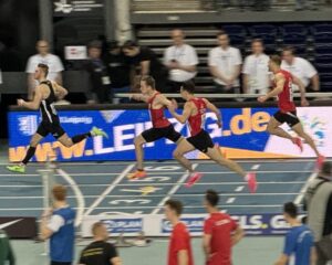 Nun begann das gespannte Warten, ob dies vielleicht sogar für den Endlauf der besten Sechs reichen könnte. Für das Finale qualifizierten sich die jeweiligen Halbfinalsieger sowie drei weitere Zeitschnellste aller Läufe. Nach dem Rennen Nummer 3 war klar, Lukas lag insgesamt auf Platz 7 und hatte damit den Endlauf um den Hauch von nur 7 Hundertstelsekunden verpasst. Welch toller Erfolg für den 22-Jährigen aus Eisenbach, der sich damit für die Freiluftmeisterschaften bestens vorbereitet zeigte. Für ihn geht es zusammen mit seinen Trainern Martin Böhm und Sven Medenbach Ende Februar ins Trainingslager nach Teneriffa und nach Ostern will er sich den Feinschliff für die anstehende Saison im LSG-Trainingslager an der Adria holen. Danach warten als Saisonhöhepunkt die 400 m Hürden mit den Deutschen Meisterschaften in Braunschweig Ende Juni.