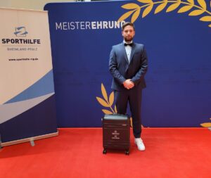 141 der Sportasse nahmen persönlich ihre Meisternadeln, Urkunden und Präsente aus den Händen von Wolfgang Bärnwick (Präsident des Landessportbundes Rheinland-Pfalz) entgegen. Unter ihnen auch Theodor Sauerwein, der für seinen Titel „Deutscher Meister im Leichtathletik-Fünfkampf der Männer 20+“ geehrt wurde. Diesen für ihn schon insgesamt 15. Meistertitel im Trikot des TV Weisel gewann er am 24. September 2023 bei den Deutschen Meisterschaften des Deutschen Turnerbundes in Dieburg, als er seinen großen Erfolg aus 2022 wiederholen konnte.