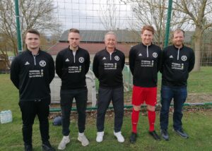 Auf dem Foto zu sehen von links der frisch gewählte Fußball Abteilungsleiter des TUS Mensfelden Marcel Trur,Dennis Bremenkamp,Adem Bülbül,Sascha Merfels und der TSV Heringen Fußball Abteilungsleiter Marco Blanke.