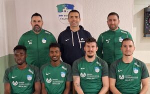 Bild: hinten v. links: Giuliano Kaiser (Trainer), Jörg Springer (Sportlicher Leiter), Miguel Chaparro (Trainer) vorne v. links: Ismail Camara, Ayuub Ibraahim, Marco Leus, Nick Erwe. – Foto: Jörg Springer