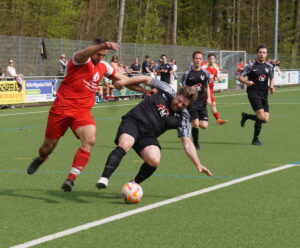 Die Hausherren kamen gut in die Partie und konnten kurz nach Anpfiff die erste nennenswerte Chance verbuchen. Fast im Gegenzug machten es die Gäste besser und erzielten das 1:0 durch Nickel (3‘). Es entwickelte sich ein munteres Spiel auf Augenhöhe. Die FSG agierte oft mit langen Bällen über ihren Libero Florian Stoll, die Hausherren versuchten hingegen spielerisch Lösungen zu finden. In der 26. Minute kam nach Eckball von Türk Klink freistehend zum Abschluss, sein Schuss wurde jedoch auf der Linie blockiert. Den Nachschuss hämmerte Kettler an das Lattenkreuz – Doppelpech für Wilsenroth. Kurz danach die wohl spielentscheidende Szene: Der Unparteiische Ivanov zückte nach einem Foulspiel von Kettler an Pfeiffer kurz vor dem Sechzehner die rote Karte und legte das Foul als Notbremse aus. Es kam, wie es kommen musste, und infolge des fälligen Freistoßes erzielte Zoric das 0:2 (34‘). Bis zur Halbzeitpause hatten beide Mannschaften weitere gute Chancen. Unter anderem trafen die Gäste nach einem schnell vorgetragenen Konter das Aluminium. Doch der SVW gab sich auch zu zehnt nicht auf: Kurz vor der Halbzeit setzte sich Schrade überragend gegen mehrere Gegenspieler durch und legte quer auf Schenk, der den Ball aus kurzer Distanz über die Linie drückte und damit den Anschlusstreffer erzielte (45‘).