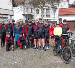 Die Verpflegung mit 1a Fleischwurst von unserem Mitglied Nico Mühleisen trug sehr zur guten Laune vieler Teilnehmer bei. Die erste Verpflegungspause gab es am Schwimmbad-Parkplatz in Limburg an der Lahn.