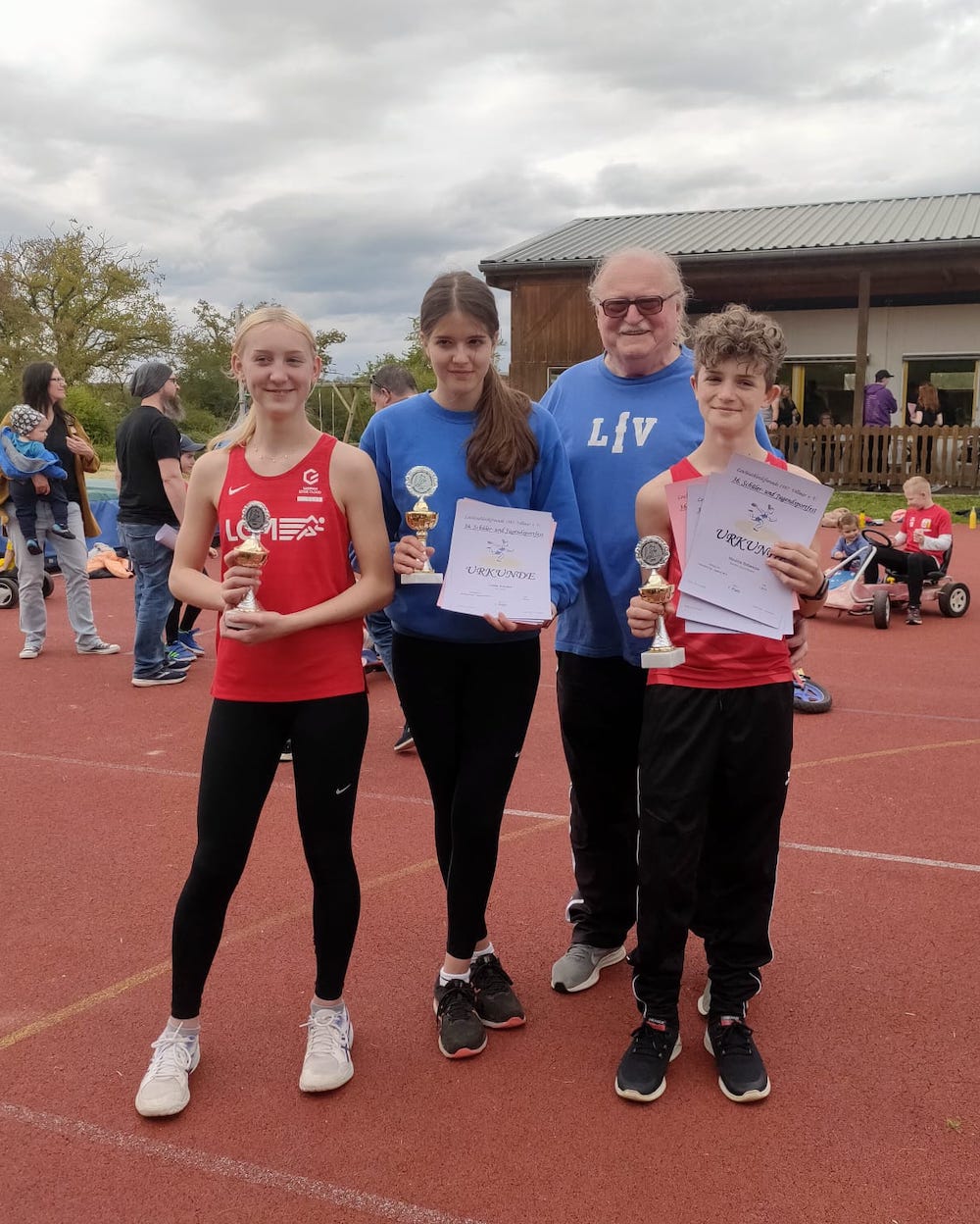 Aus der Vielzahl der guten Leistungen ragten besonders hervor Leslie Arbeiter (Leichtathletikfreunde Villmar) in der W 15 mit 10,53 m im Kugelstoßen, mit 27,24 m im Diskuswerfen und mit 41,26 m im Schleuderball (damit war sie rund 6 m weiter als die letztjährige Deutsche Meisterin), in der W 14 Helene Kröner (LC Mengerskirchen) mit 1,46 m im Hoch- und mit 4,87 m im Weitsprung, in der M 14 Maurice Schwarze (SC Oberlahn) mit 1,60 m im Hochsprung sowie in der W 13 Alix Nicola Söll (LG Taunusstein) mit 41,66 m im Speerwurf. Aber auch Helena Pohle (W 13 ) mit 7,77 m im Kugelstoßen, Lisa Bermbach (W 12 / beide LCM) mit 1,35 m im Hochsprung, in der M 11 Marian Duma (TG Camberg) mit 7,7 sek über 50 m und mit 3,87 m im Weitsprung, sowie Armin Conrad mit 45,00 m im Ballwurf, Nic Binnentreu (M 10 / beide LfV) mit 33,00 m im Ballwurf, in der W 11 Clara Stohr über 50 m in 8,0 sek, Mirja Wagner (beide TV Eschhofen) im Weitsprung mit 3,82 m, sowie Emilia Dvortsova (LfV) im Ballwurf mit 23,50 m können sich durchaus sehen lassen.