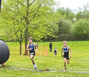 Den Abschluss bestreitet Nachwuchstalent Finn Baumann. Erstmals als B-Schüler wird der 10jährige einen Swim+Run, bestehend aus 200m Schwimmen und 1km Laufen, bestreiten. Er liefert sich einen tollen Wettkampf mit Niclas Liermann vom ACT Kassel. Schulter an Schulter fliegen die beiden der Ziellinie entgegen. Niclas hat knapp die Nase vorn. Finn gewinnt mit nur einem Zehntel Rückstand in 9:53min die Silbermedaille. So ist es im Sport. Im Februar war es noch andersherum. Sind wir auf den ersten Triathlon für die Schüler am 2.6. in Griesheim und am 9.6. bei den Hessischen Meisterschaften in Babenhausen gespannt.