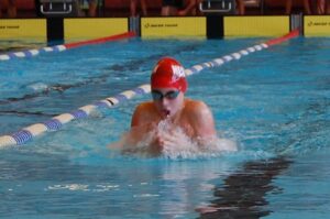 Veranstaltet wurden die Wettkämpfe in diesem Jahr im bayerischen Ingolstadt, wo sich vom 3.-5.5.24 die männliche und weibliche süddeutsche Schwimmelite versammelt hatte. Und hier zeigte Timm wieder einmal seine ganze Klasse, und warum in Süddeutschland im Jahrgang 2009 auf der Brustlage keiner an ihm vorbeikommt. Timm pulverisierte seine Werte aus dem letzten Jahr gleich auf zwei Strecken. In einem Feld harter Konkurrenz gelang es Timm, in 01:09:27 min (2023: 1:12:40 min) zum süddeutschen Vizejahrgangsmeistertitel über 100m Brust zu schwimmen. Und über 200m Brust setzte er dann noch einen drauf: mit 02:31:56 min schlug er seine Leistung aus dem letzten Jahr (2023: 02:37:06 min) um mehr als fünf Sekunden und gewann dem Jahrgangsmeistertitel souverän vor der Konkurrenz. Fast schon unnötig zu sagen, dass er seinen eigenen aufgestellten Vereinsrekord damit um Längen schlug. So tauschte Timm an diesem Wochenende seinen Meistertitel aus dem letzten Jahr gegen einen Vizemeistertitel (100m Brust) – und seinen Vizemeistertitel gegen einen Meistertitel (200m Brust) ein. Über 50 m Brust erkämpfte Timm sich noch einen beachtenswerten vierten Platz.