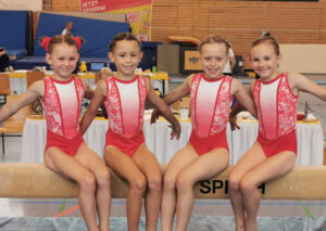 Mit Milena Hein (AK 7), Elena Fischer, Marie Feller und Rosalie Schleimer (alle AK 8) durften gleich vier Turnerinnen aus dem Leistungszentrum Limburg/TV Elz beim bundesoffenen Spieth-Cup in Berkheim an den Start gehen.