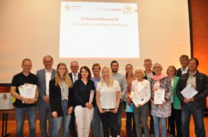 Rückwirkend für die Jahre 2022 und 2023 führte Nicole Schneider einen eigenen Schul- und Vereinswettbewerb im Sportkreis ein. Für die Schulen bedeutet das, dass die Anzahl der Sportabzeichen separat für die Jahre ins Verhältnis der Schüleranzahl gesetzt wird und diejenigen Schulen, die somit prozentual die meisten Sportabzeichen erworben haben, mit Gutscheinen des Sportkreises belohnt werden. Markus Herr vom Staatlichen Schulamt Limburg-Weilburg gratulierte den Schulen und war begeistert, mit welcher Freude die Schulen das Sportabzeichen zusätzlich im Schulsport anbieten. Die Franz-Leuninger-Schule Mengerskirchen war überwältigt, dass sie mit einer Quote von 54 Prozent die erfolgreichste Schule im Landkreis ist.