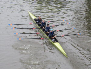Den Auftakt machte der Mixed Doppelvierer mit Steuermann der 13 / 14-jährigen. Hier konnten sich Lina Wüst, Nele Bontjer, Constantin Elias, Lukas Thöne und Steuermann Hannes Schaub gegen ihre Konkurrenten aus Hanau und 2 Booten aus Kassel durchsetzen und sowohl die 3000m als auch die 1000m deutlich für sich entscheiden.