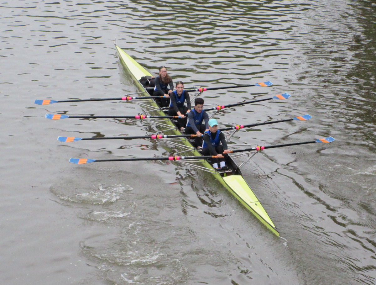 Den Auftakt machte der Mixed Doppelvierer mit Steuermann der 13 / 14-jährigen. Hier konnten sich Lina Wüst, Nele Bontjer, Constantin Elias, Lukas Thöne und Steuermann Hannes Schaub gegen ihre Konkurrenten aus Hanau und 2 Booten aus Kassel durchsetzen und sowohl die 3000m als auch die 1000m deutlich für sich entscheiden.