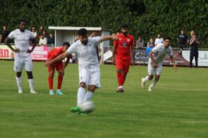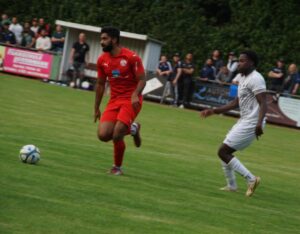 RSV Würges – SV 1921 Erbenheim 1:3 (0:2). – Zwar Würges gleich zu Beginn mit den ersten Aktionen und einem Flankenball in den Strafraum, der aber ohne Abnehmer blieb. Beim ersten Erbenheimer Vorstoß nahm das Unheil aber gleich seien Lauf: Foulelfmeter verursacht an Kouami Edem Dalmeida, Strafstoß durch Fouad El Bakkaoui sicher verwandelt zur Gästeführung (4.). Der Gast konnte sich darauf nun gut ausruhen und dem RSV eine meist nutzlose optische Überlegenheit mit mehr Ballbesitzphasen gewähren. Nico Brands schickte dann aber mit tollem langen Pass über 40 Meter Jermaine Pedraza auf die Reise, der den Abschluss aber völlig verzog (16.). Erbenheim dann in Person von Karim El Bakkaoui knapp links oben am Würgeser Kasten vorbei aus 25 Metern (20.). Wieder Jermaine Pedraza für Würges dann aktiv: starke Einzelleistung gegen gleich drei Gästespieler – Abschluss in etwas Rücklage über das Tor (28.). Der Gast mit einem Kopfall durch Bilal Oukouiss, rechts oben über das Gehäuse gesetzt (34.). Das zweite Erbenheimer Tor dann wirklich unnötig: Schlecht verteidigt auf Würges‘ linker Seite, Nikals Feidt setzte sich durch, schloss aus schon spitzem Winkel satt ab ins lange Eck und Keeper Leon Kröller noch durch die Beine, aber der Fehler passiert zuvor bereits – 0:2 (37.). Dann nochmal ähnlich wieder ein Angriff auf Erbenheims rechter Seite, Leon Kröller greade noch vor dem Abschluss von Kouami Edem Dalmeida zur Stelle (40). So ging es in die Pause.