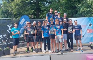 Das Ziel des Reserveteams der Neubundesligisten ist klar definiert: Aufstieg in die nächsthöhere Klasse. Der Unterbau muss hoch. Die Grundlage hat die Mannschaft beim Teamsprint gelegt. Das Spannende dieses Formats ist, dass das Team vom Start weg zusammen bleiben muss. Die vom Triathlonverband gestellte Aufgabe über 750m Schwimmen im Sickenhofer See; 20km Radfahren im Teamzeitfahrmodus und 5km Laufen mit Schieben und Ziehen der schwächeren Läufer im Team lösen die fünf Limbacher bravourös. Als schnellster Schwimmer entsteigt Tom Borst dem See und braucht auf die vier Mannschaftskollegen nicht lange warten. In der Reihenfolge Kolja Rüb, Simon Krause, Lukas Hafner und Jan Lucas Ferschke folgen sie hintereinander weg. Beim Radaufsprung beträgt der Vorsprung der fünf TriHünen auf die ersten Verfolger bereits über zwei Minuten. Ein Vorsprung, der sich auf dem Rad mit jedem Pedaltritt vergrößert. Die Stoppuhr von Teamcoach Marius Holl zeigt knappe vier Minuten auf die Darmstädter Verfolger, als die Equipe Elz/Limbach in die Laufschuhe schlüpfte. Zu diesem Zeitpunkt war man nur noch zu viert. Ferschke, leicht geschwächt von den Feierlichkeiten zum bestandenen Abi, wurde angesichts des Rennstandes beim Radfahren zwar in den eigenen Belastungsmodus „entlassen“, beendete das Rennen aber mit Blick auf die vorab geleistete Arbeit fürs Team zufrieden. Zum Ende lief die Mannschaft nahezu fünf Minuten vor den Zweitplatzierten der Triathlonhochburg DSW12 Darmstadt ins Ziel und führt die Tabelle erst einmal an. So soll’s weiter gehen.
