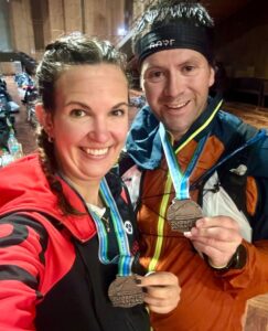 Das Ehepaar Samer aus Seelbach startet seit September 2023 für die VLG Eisenbach. Beide hatten sich für den 68 Kilometer langen Leutatsch Trail angemeldet. Hier ging es insgesamt 2.870 Meter berghoch und 3.370 Meter bergab. Das Zeitlimit betrug 16 Stunden. Der Start für die 626 Teilnehmer erfolgte um 09.00 Uhr an der Wettersteinhalle in Leutatsch und führte über das Schanzenjoch zum Schützenhaus in Mittenwald. Von da ab war die Strecke identisch mit der von Reiner Trost, allerdings herrschte jetzt ein so mieses Wetter, dass man sich überwinden musste, weiterzulaufen. Jedes Leiden hat aber bekanntlich ein Ende und so waren Daniela und Sebastian froh, nach 13:45:26 Stunden ihr Rennen beendet zu haben. Platz 189 für Sebastian bei den Männern und Rang 62 für Daniela bei den Frauen, eine geschmackvolle Medaille und für beide eine bleibende Erinnerung an ihr Trail Run Debüt in den Alpen, waren für beide die Belohnung für den anstrengenden Tag.