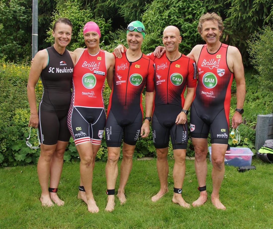 Ein besonderes Highlight dieses Jahres waren die erstmals ausgetragenen Rennen der Hessischen Triathlon Senioren- und Masterligen. Eine besondere Ehre für den Verein, diese erfahrenen Sportler im Jubiläumsjahr zu Gast haben zu dürfen. Hier konnte das heimische Team, das gemeinsam mit der Tria-Equipe Elz als SG Elz/Limbach antritt, den ersten Platz in der 2. Seniorenliga erzielen. Damit verteidigt das Ü40-Team die Tabellenführung souverän und liegt auf Aufstiegskurs. Für die SG am Start: Dominik Thiel (1.), Till Ziegler (2.), Tobias Behle (4.) und Sebastian Szardien (13.).