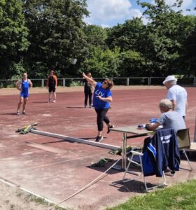 Bei den Senioren gab es 2 Mal Gold und 3 Mal Silber. Der Titelverteidiger im Steinstoßen der M 50 Clemens Tilke wuchtete den Stein auf 8,60 m, war damit erneut nicht zu schlagen und holte wieder den Hessentitel und die Goldmedaille. Sie kam, sah und siegte. Nadine Kissel, die vor rund 30 Jahren ihren letzten Wettkampf bestritt, feierte bei der W 40 ein glänzendes Comeback. Im Steinstoßen holte sie sich den Hessenmeistertitel und die Goldmedaille mit 6,58 m und im Schleuderball Silber und die Vizemeisterschaft mit 21,65 m. Zweimal Silber ging bei der M 70 an Walter Haas und zwar mit 7,01 m im Steinstoßen und mit 25,64 m im Schleuderball. Bei herrlichem Wetter waren besonders die Nachwuchsathleten stolz auf ihre Urkunden und Medaillen.