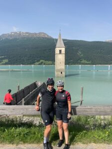 Als am heutigen frühen Sonntagmorgen um 06.30 Uhr der Startschuss  zum 31. Dreiländergiro in Nauders in Österreich fiel, waren Lisa und Michael Rembser, Elke Leimpek und Oliver Schmidt bei leichtem Nieselregen mit am Start.  Lisa und Elke hatten für die 120 Kilometer lange „ Vinschgau „ Strecke  mit 3000 Höhenmetern gemeldet, Michael und Oliver starteten auf der 168 Kilometer langen „ Engadin Strecke „ mit 3.300 Höhenmetern. Zusammen mit Radfahrern aus 31 Nationen ging es von Österreich aus nach Italien, über den Reschenpass bis nach Prad und dann die 48 Kehren des eindrucksvollen Stilfserjoch mit 2.797 Metern und immer noch sehr viel Schnee . Von hier aus ging es über den atemberaubenden Umbrailpass in das schweizerische Münstertal und wieder über den Reschenpass zurück. Elke belegte  im Ziel in Nauders wie im Vorjahr den zweiten Platz in ihrer Altersklasse Frauen 60  und war mit ihrer Zeit von 6:20:00 Stunden sogar 12 Minuten schneller als 2023. Lisa, die zuletzt sehr viele lange Trails zurückgelegt hatte, zeigte ihre Klasse auf dem Rennrad und überzeugte mit Rang 18 bei den Frauen 30 und der Zeit von 5:52:59 Stunden.
