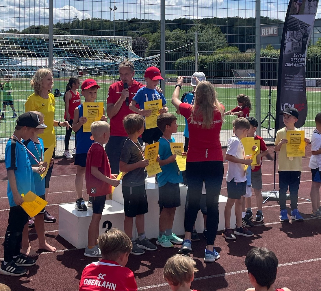 Auch in den älteren Altersklassen gab es tolle Platzierungen. Laura Fiedler schaffte in der W 10 mit 859 P. (8,96 sek/2,95 m/19,00 m) den Sprung aufs „Treppchen“ und wurde 3. Auf Platz 11 kam in dieser Klasse Sophie Grieswald mit 667 P. (9,78 sek/2,55 m/14,50 m). 6. wurde in der W 11 Emilia Dvortsova mit 889 P. (9,69 sek/3,27 m/23,00 m). In der Klasse M 10 belegte Niklas Grieswald mit 656 P. (9,00 sek/2,71 m/23,00 m) den 9. Platz, Fabio Heinbuch wurde mit 618 P. (9,78 sek/2,53 m/28,00 m) 11. und Luke Schmidt mit 613 P. (9,59 sek/2,71 m/23,00 m) 12. Alle Kinder erhielten als Belohnung für ihre tollen Leistungen eine Medaille und hatten große Freude und viel Spaß beim großartigen Bambini-Sportfest in Mengerskirchen.