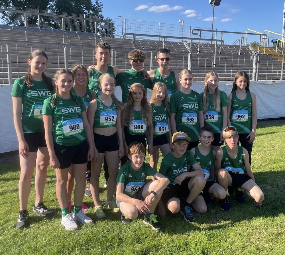 Hierbei ist der U14 Nachwuchs mit 47 Platzierungen am häufigsten in der Datenbank des Leichtathletik-Verband Rheinlandes, Stand 15. Juli 24, zu finden. Neben insgesamt 15-Mal Edelmetall bei Rheinland und Rheinland-Pfalz Meisterschaften in Wittlich, Konz, Hachenburg und Ingelheim und sehr guten Platzierungen bei den süddeutschen Meisterschaften in Waldorf und Koblenz, ist ein positives Fazit zu ziehen. Im Weitsprung mit 4,65 m, im 3-Kampf mit 1365 Punkte und im 4-Kampf mit 1724 Punkte ist Matilda Augst W12 aus Hachenburg 3-mal auf Platz 1 und insgesamt 15 Mal vertreten. 13-Mal findet man Viola Fehse (W12) aus Alpenrod in der LVR-Statistik. Außerdem vertreten sind Carlotta Augst 2-Mal, Io Qirmbach 4-Mal, Malina Ziegner 1-Mal (alle W12) und Nele Gabert (W13) 4-Mal. Bei den Jungs sticht der Silbermedaillen Gewinner im Block Sprint/Sprung, Noah Schwan (M12) aus Gehlert 8-Mal in der LVR Statistik heraus. Zudem findet man Ansgar Brandt 3-Mal, Titus Qirmbach 3-Mal (beide M12) und Erik Reusch (M13) 2-Mal in der LVR Statistik. Toni Schneider (M14) aus Hattert konnte sich 8-Mal in der LVR Bestenliste platzieren. Mit 2010 Punkte im 4-Kampf liegt Toni sogar aktuell in der deutschen Bestenliste auf Rang 10 sowie im Block-Wurf mit 2584 Punkte auf Rang 7! Darüber hinaus belegt Toni im Diskuswurf mit 38,63 m im Bundesgebiet auf Rang 16! Anna Charlotte Kölbach (U18) aus Altenkirchen führt im Kugelstoßen mit 13,07 m sowie im Diskuswurf mit 34,87 m die LVR Bestenliste an. Damit belegt Anna in der DLV-Statistik auf Rang 20 im Kugel und auf Rang 28 im Diskus. Mit der 4 kg der U20 belegte Anna immerhin Rang 5. Außerdem sind in der LVR-Bestenliste Yannis Müller (U20) 5-Mal vertreten, Samuel Schollmeyer (U18) sowie Tristan Augst (U18) jeweils 4 zu finden. Helen Schäfer und Elias Ludwig (beide U18) können sich ebenfalls über eine Platzierung freuen. Bei den Senioren sind bereits Sigrid Hofmann (W55) und Nobert Hoffmann (M85) jeweils 2-Mal und Marita Brenk (W65) 1-Mal in Erscheinung getreten. Erfreulich sind auch die Einsätze in den Staffeln und Mannschaftsteilnahmen im LG Westerwald Team, die es jeweils in die Bestenlisten geschafft haben.