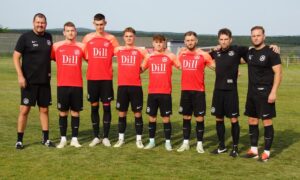 mitte von links: Wolfgang Dill (Hauptsponsor), Florian Dempewolf (Trainer), Pascal Heene (Co Trainer), Paul Steinhauer, Julian Eufinger, Sebastian Schmitt (Torwarttrainer) Markus Bardenheier (Vorstand), Marco Schmitt (Betreuer)