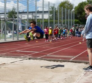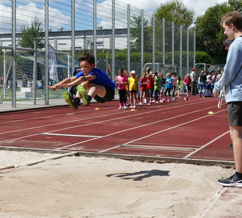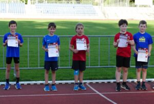 In Mengerskirchen absolvierte er die 50 m in 7,9 s, sprang technisch sehr schön in allen 3 Weit-sprungversuchen Bestleistung, 4,16 m standen am Ende in der Liste und warf den Schlagball 33 m weit. Mit 1040 P siegte er deutlich im 16er-Starterfeld. Beim Abendsportfest in Koblenz überquer-te er die Ziellinie nach 50 m in 8,14 s. Nach Problemen mit der Zone sprang er 3,96 m weit und steigerte sich mit dem Schlagball erstmals auf 35 m. Mit 1006 P siegte er auch dieses Mal. Ein Abendsportfest nach einem langen Tag war für alle eine neue Erfahrung, wie auch Lukas Scheid (beide M10) und Greta Stahl (W10) im Stadion Oberwerth feststellten.