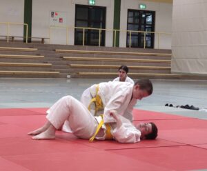 Präsentieren mussten die Schüler Würfe, Haltegriffe und Befreiungen sowie deren richtige Anwendung im Stand- und Bodenkampf. Die Kombination- und Konteraufgaben forderten die Anerkennung der anwesenden Trainer und Eltern.
