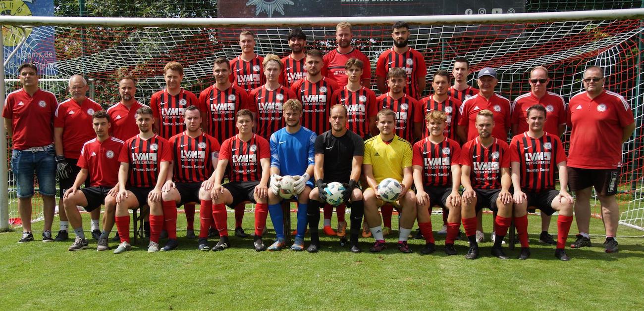 in der Mitte von links:Thomaz Hartmann(Spielausschuss), Dirk Schmidt(Torwart Trainer),Alexander Wagner (Spielausschuss),Sascha Merfels( Trainer), Tim Rischling, Arnold Kaufmann, Colin Scheid, Tobias Doogs, Sam Kobs, Dominik Doogs, Adem Bülbül (Trainer ) Daniel Wolf Spielausschuss) Martin Diehl (Stellvertretender Fußball Abteilungsleiter).