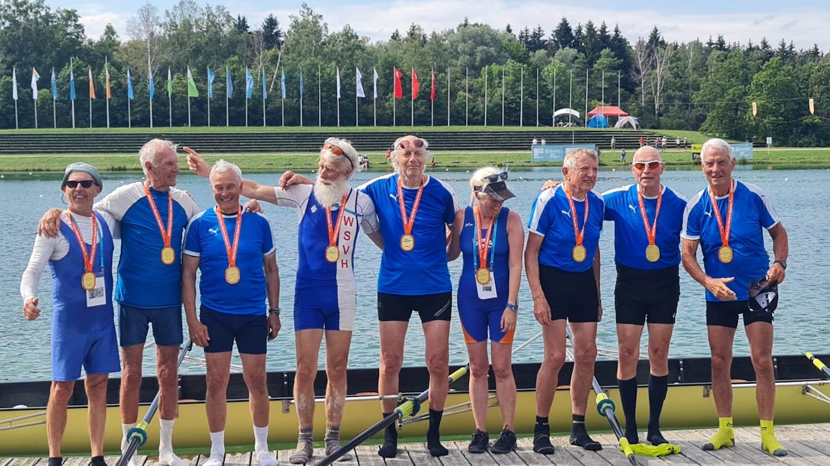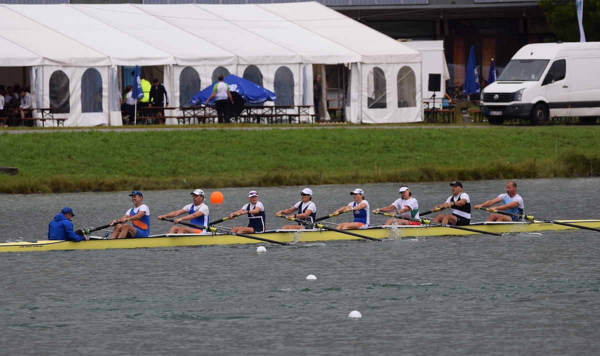 Steuerfrau Simone Haubrich gab ihr Debüt auf internationalem Terrain. Dies gelang ihr gleich hervorragend, denn im gesteuerten Männervierer der Altersklasse I (MDA 75) mit Ruderern aus Rheinfelden, Krefeld und Bremen so wie im Achter der gleichen Altersklasse mit Ruderern aus Rheinfelden, Krefeld, Flörsheim, Mainz, Österreich, Honnef, Koblenz und dem Limburger Klaus Schuy führte sie ihre Mannschaften gekonnt über die 1000 m Strecke. Alle durften sich über die verdienten Medaillen freuen. Einen dritten Platz holte Simone Haubrich mit dem Männer-Achter der Altersklasse H (MDA 70), in dem ebenfalls Klaus Schuy saß. Er holte erruderte mit seiner Mannschaft im Männer-Doppelvierer H mit Ruderern aus Flörsheim, Krefeld und Bremen einen sehr guten zweiten Platz. Im Männer-Doppelvierer I wurde er zusammen mit Ruderern aus Mainz, Honnef und Koblenz Dritter.