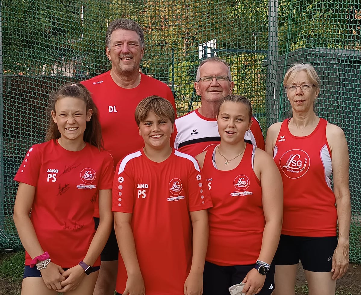Drei Schüler*innen und drei Senior*innen der LSG Goldener Grund testeten beim Rasenkraftsport-Werferabend in Eppstein ihre Form im Hammerwurf und Gewichtwerfen. Pauline Schmitt (W14) ging bei den Schülerinnen A an den Start und kam mit erfreulichen 27,22 m im Hammerwurf (3 kg) nah an ihre persönliche Bestleistung heran. Im 3 kg-Gewichtwerfen, bei dem das Wurfgewicht zwar ebenfalls kugelförmig ist, allerdings durch die viel kürzere Kette (nur 50 cm gegenüber der Drahtlänge von 1,22 m) eine viel geringere Hebelwirkung bietet als beim Hammerwerfen, erzielte Pauline eine gute Serie mit 16 m-Würfen. Der erste Versuch mit ansprechenden 16,75 m war gleich ihr weitester.